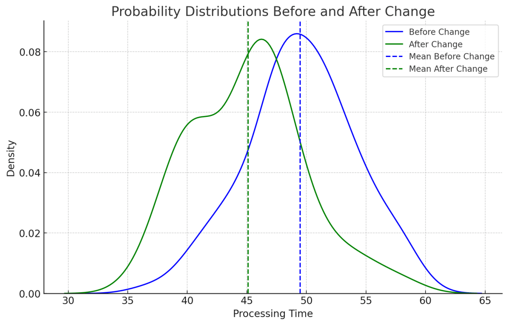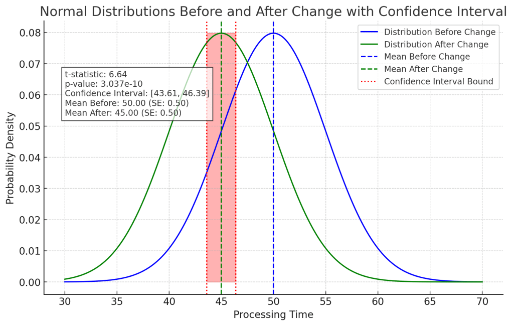 Beyond statistical significance, it’s essential to consider practical implications. While the results confirm an improvement, the next step is determining whether this reduction translates to meaningful operational benefits—such as cost savings, increased throughput, or improved customer experience.